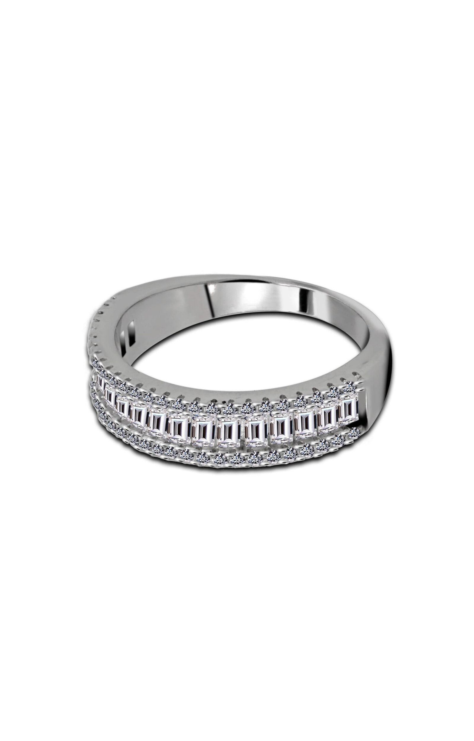 Elevate your eternal love with this stunning baguette triple row wedding band. Featuring three rows of brilliant diamonds in a classic sterling silver setting, this elegant women’s ring combines timeless sophistication with modern sparkle.