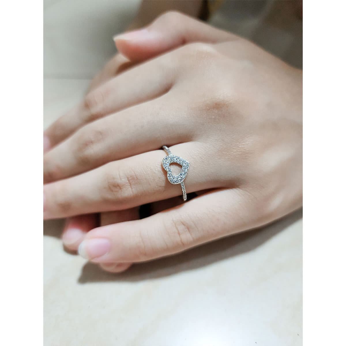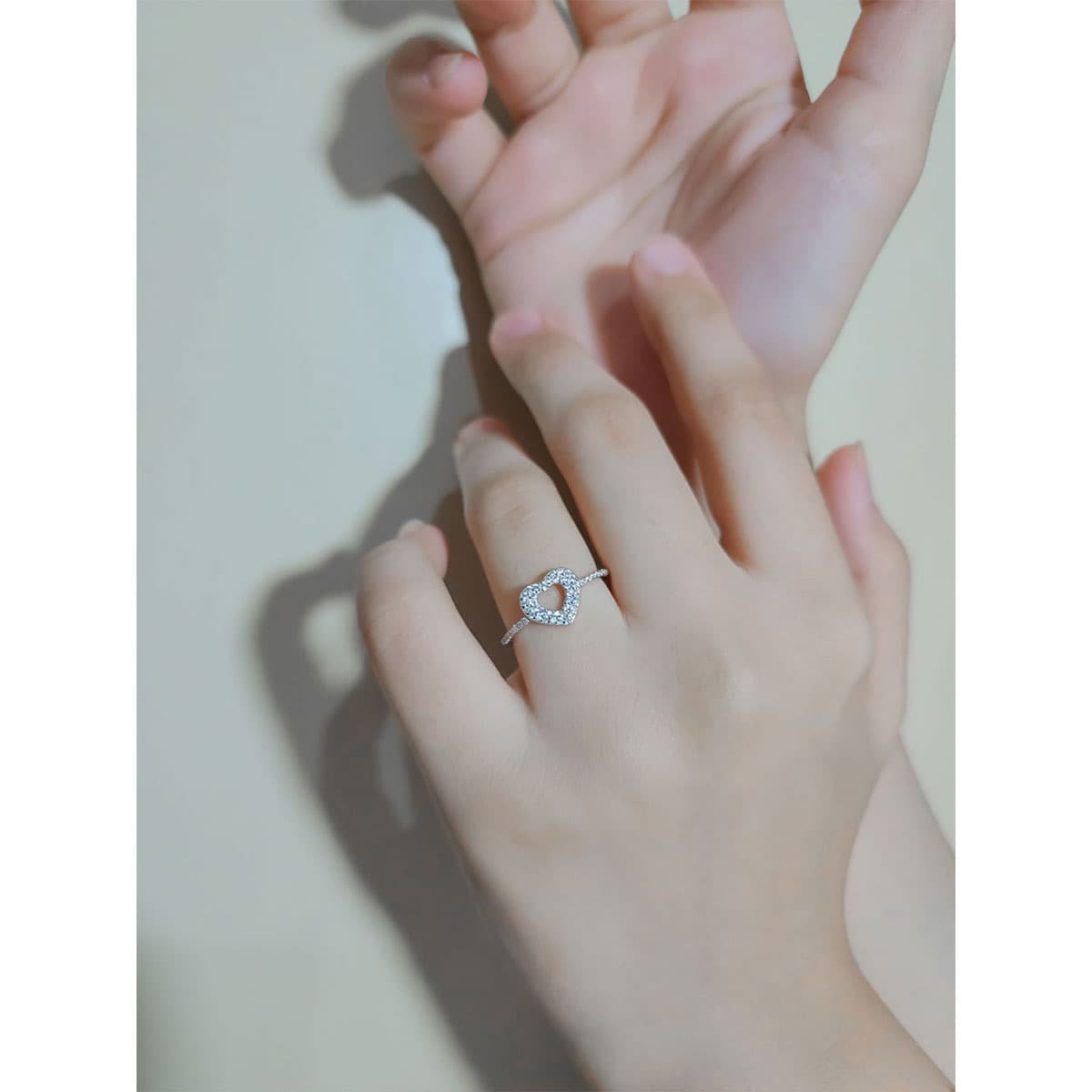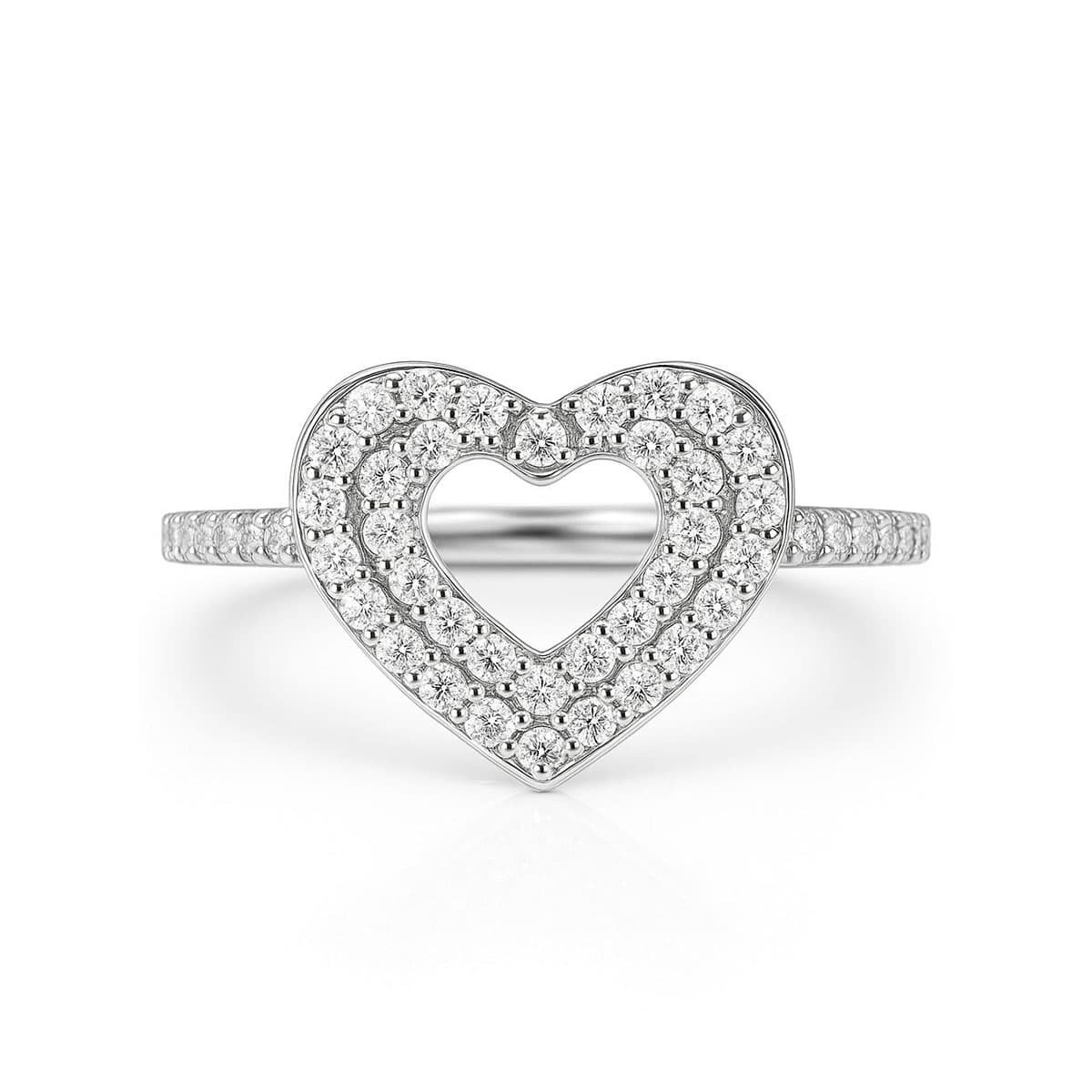 Elegant open heart halo ring centerpiece fully paved with brilliant round stones