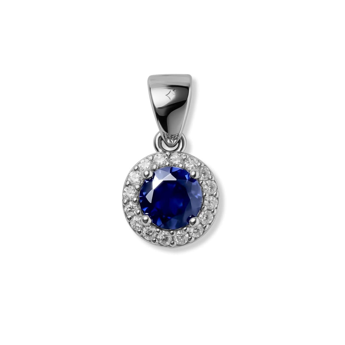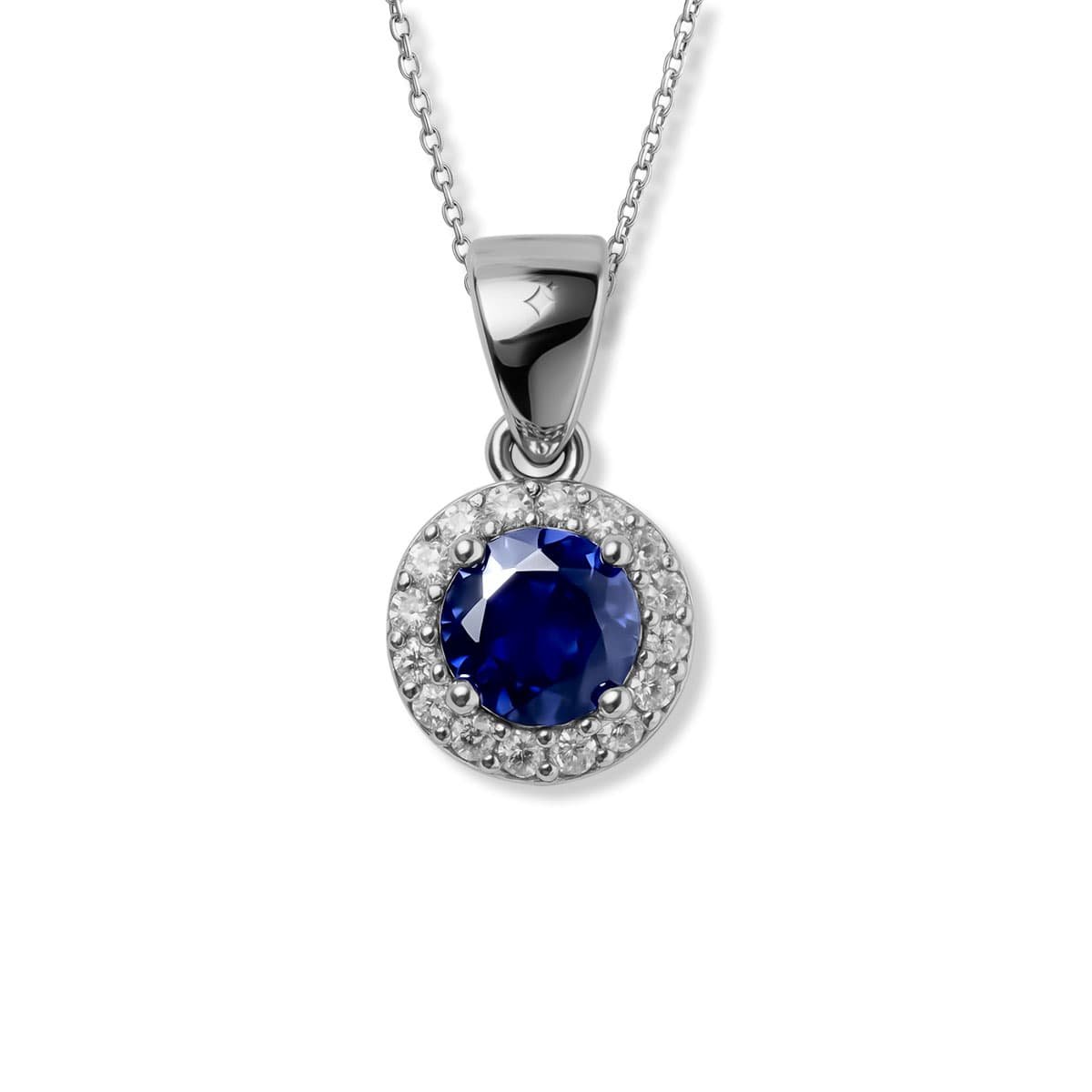 Introducing the Ocean Luxe Pendant. A captivating piece that embodies elegance and oceanic charm. Handcrafted in 925 sterling silver, this pendant showcases a deep sapphire blue centerpiece encircled by a halo of shimmering cubic zirconia stones. The rhodium-plated finish enhances its brilliance, making it a timeless addition to your jewelry collection.