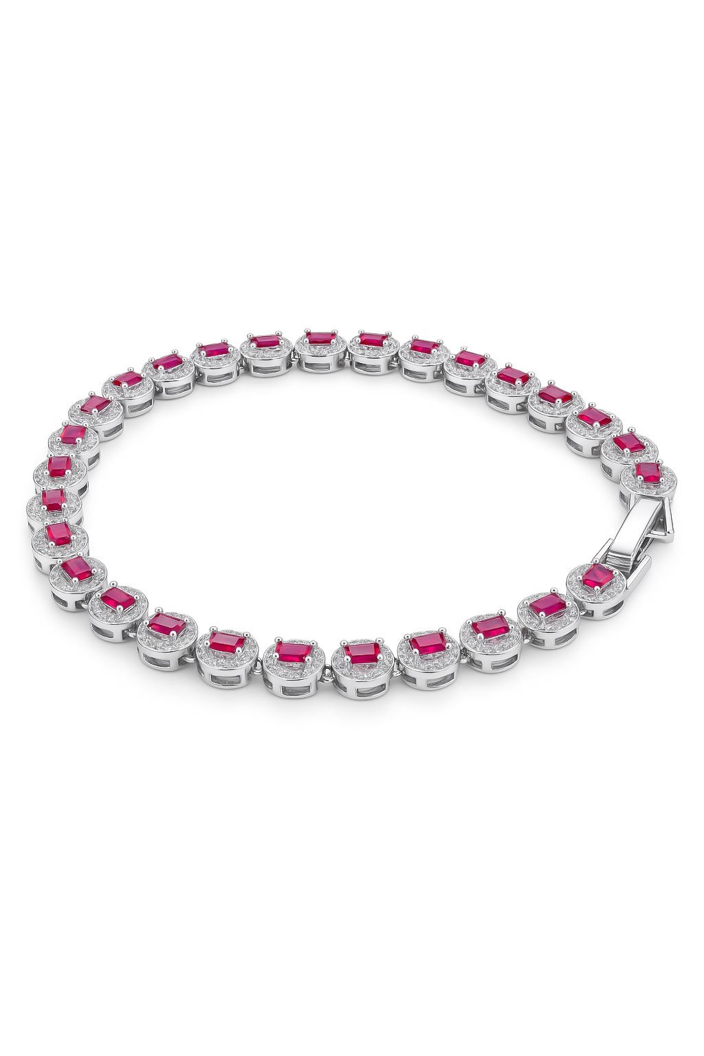 Add a touch of sophistication and color to your style with this stunning pink sapphire tennis bracelet crafted in 925 sterling silver. Each vibrant pink stone is securely set in a sleek silver link, creating a radiant line of brilliance that sparkles from every angle. Perfect for special occasions or everyday elegance, this bracelet embodies timeless beauty and luxury.