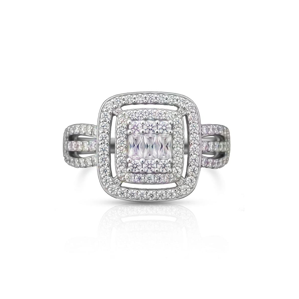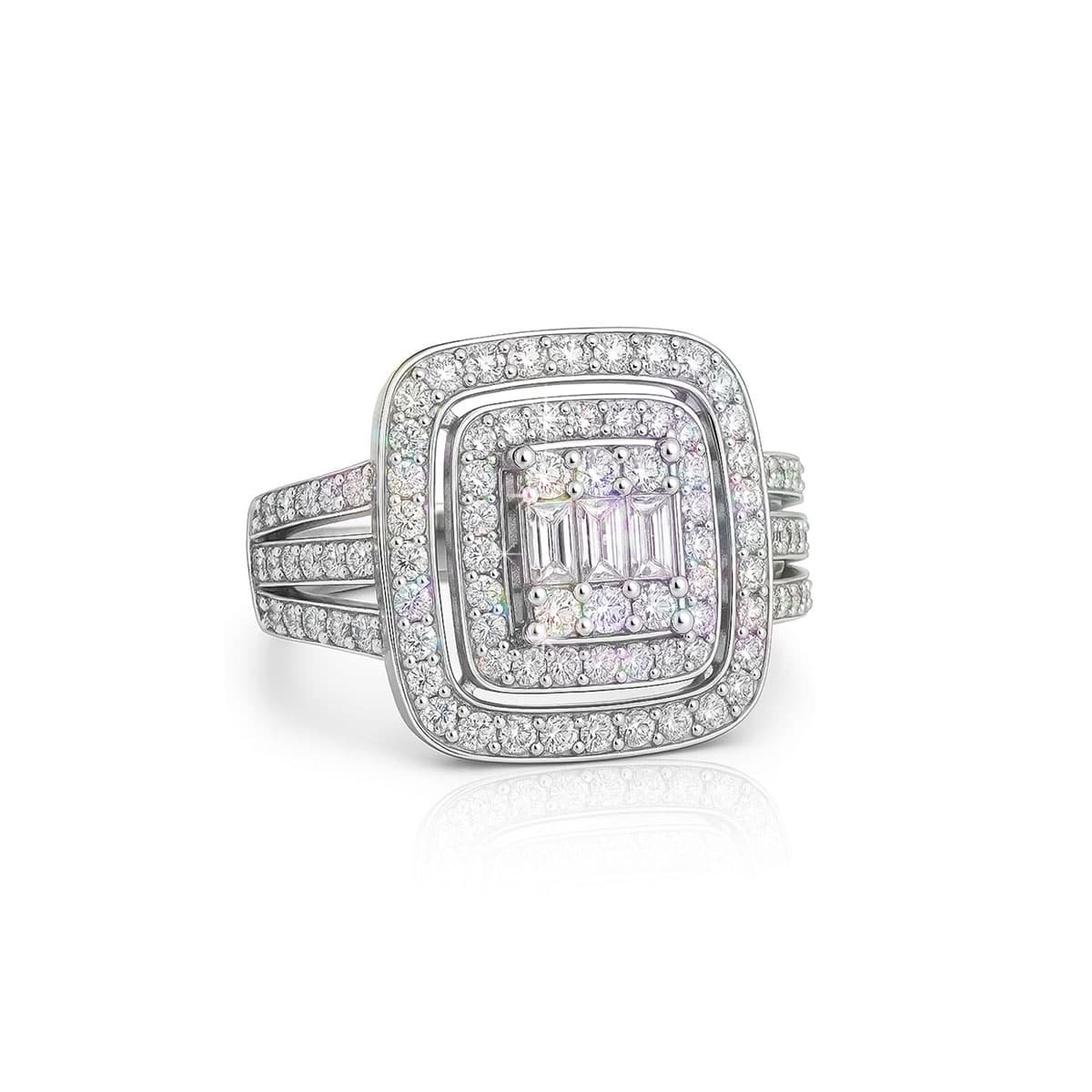 Experience timeless luxury with this exquisitely crafted quad halo diamond cluster ring, featuring a flawless arrangement of baguette and round stones for exceptional brilliance. Designed in high-polish 925 sterling silver, this ring brings together modern elegance and classic sparkle—perfect for gifting or personal wear.