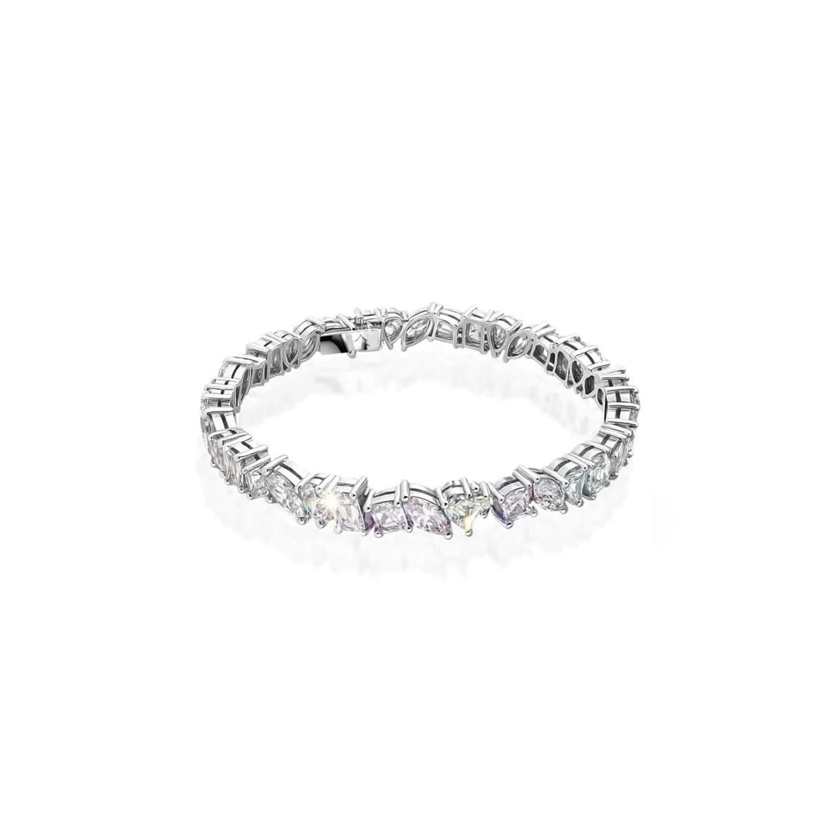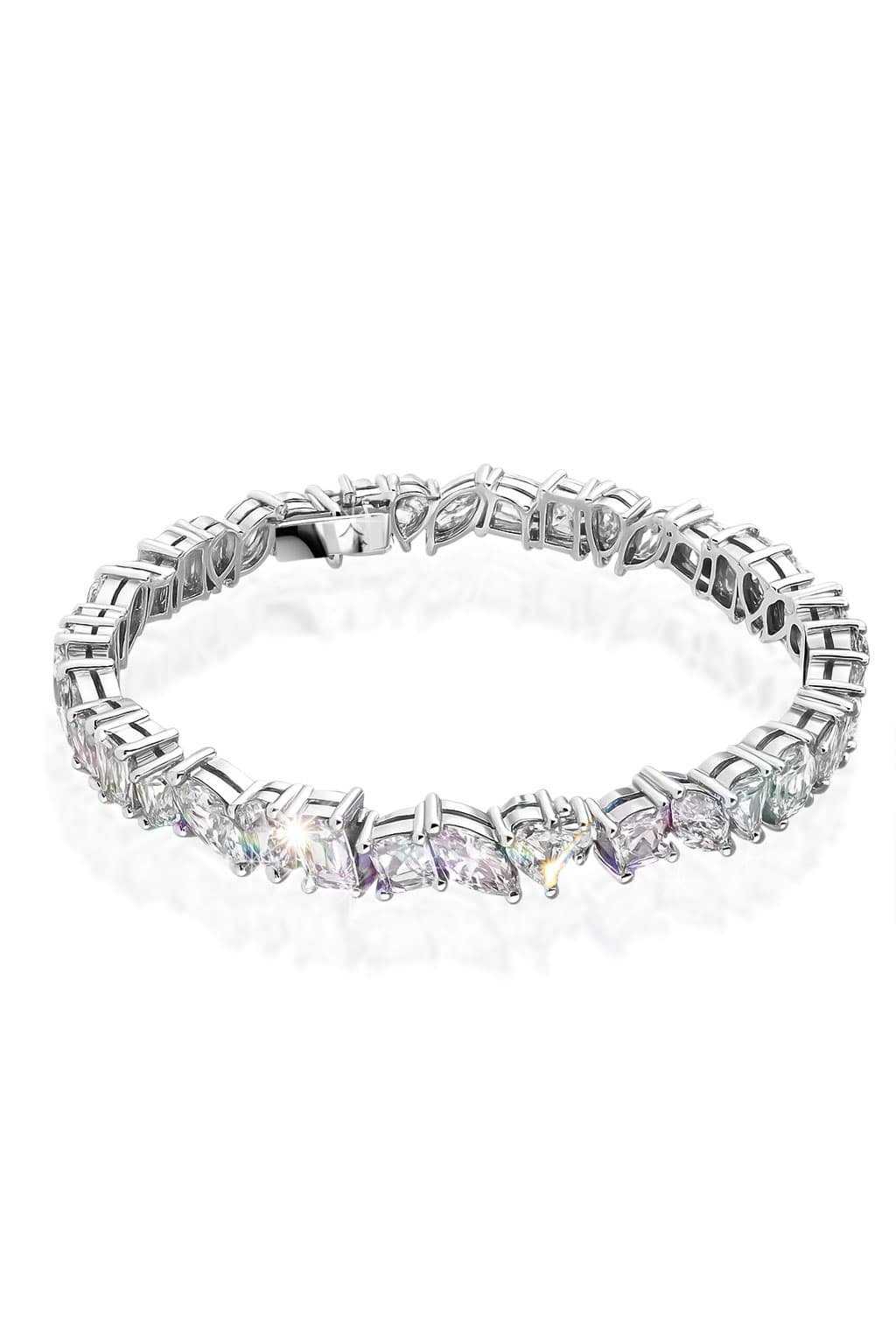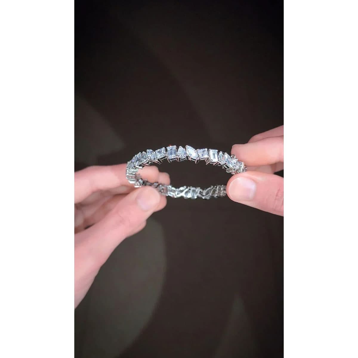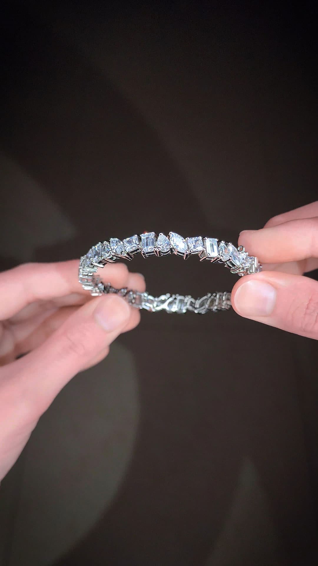 This tennis bracelet for women features a captivating blend of four distinct stone cuts — marquise, pear, princess, and emerald — creating a graceful rhythm of light and reflection. Designed to mimic the brilliance of a diamond tennis bracelet, each cubic zirconia sparkles with clarity, offering the elegance of fine jewelry with the affordability of a crystal bracelet. Its seamless eternity style and sleek silver finish make it the perfect aesthetic bracelet for both everyday luxury and special occasions.